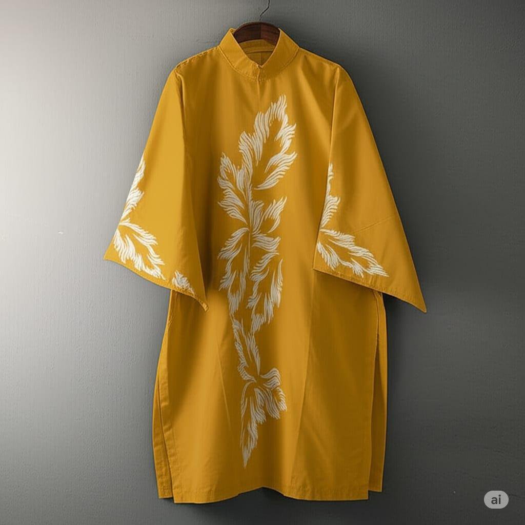 Be the first to review “Mustard Embroidered Cotton Co-Ord Set | High Neck 2-Piece Shirt & Trouser for Women – Husnezara”