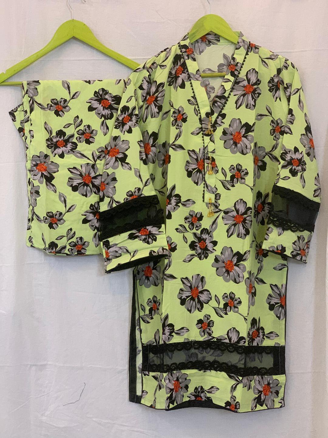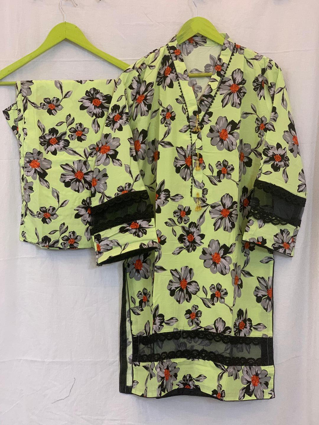 Be the first to review “Women’s Green Printed Linen Suit | 2-Piece Stitched Shirt and Trouser Set – Husnezara”